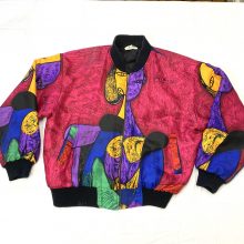 1990s Picasso abstract art bomber jacket woman’s L aop purple red pink