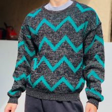 vintage 90s green black abstract knitted sweater