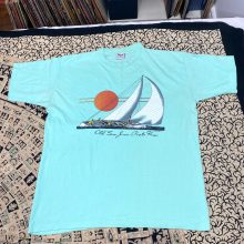1980s San Juan Puerto Rico t-shirt dated 1986 sunset sailboat aqua seafoam green