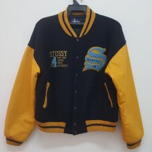 VINTAGE 90s 1997/1998 STUSSY BIG 4 VARSITY STADIUM JACKET RARE YELLOW MUSTARD